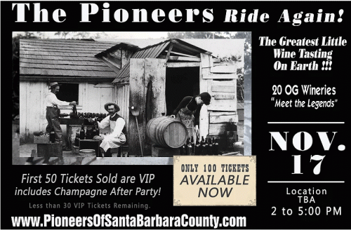 A special wine tasting dedicated to promoting the history and craft of the wine making visionaries who shaped the region’s AVAs of today. It is the Pioneers’ mission to promote the history of these forbearers who worked the earth long before Santa Barbara County was a celebrated wine region. Spend some time with Louis Lucas and other area wine making pioneers as they pour their "heritage" wines, the library wines they're most proud of. Tickets are $125 at the door and $100 in advance. The first 50 tickets sold are VIP and include a Champagne after-party.