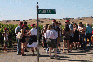 Vino lovers meet at the Los Alamos Vineyard to taste Toccata Cal-Itals. (middle)
